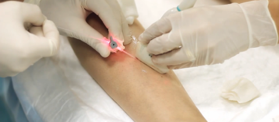 1. Обезболивание и проколы. Введение обезболивающего средства и стерилизация зоны операции. После чего обозначают участки будущих проколов и проводятся проколы кожи возле поврежденной вены.